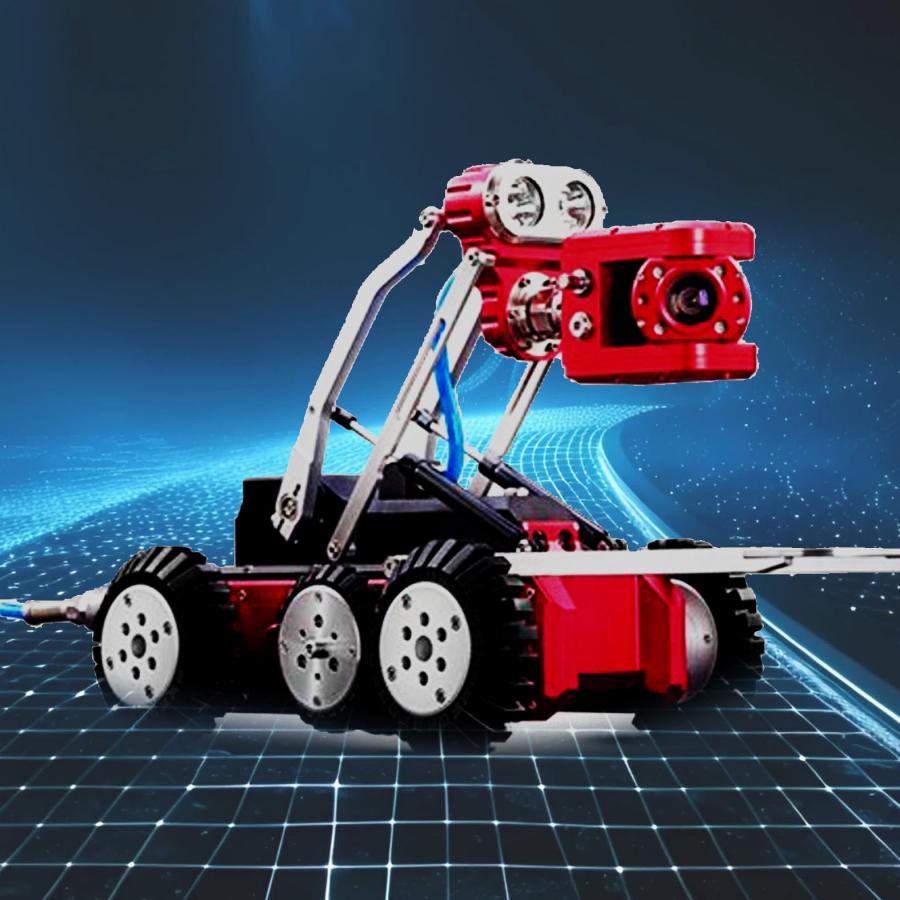 检测机器人有先进的摄像头、爬行器及灯光系统,完全由带遥控器的监视控制,操作简单,移动方便。可以进行影像 处理、记录摄像。具有高质量的图像记录和文字编辑功能。其主要工作部分为一部四轮驱动的机器人和一台计算机。通 过机器人在管道内爬行,对管段进行影响记录、缺陷部位抓拍、检查。